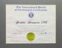 1996年11月にCPEの電気脱毛の認定資格を取得いたしました。